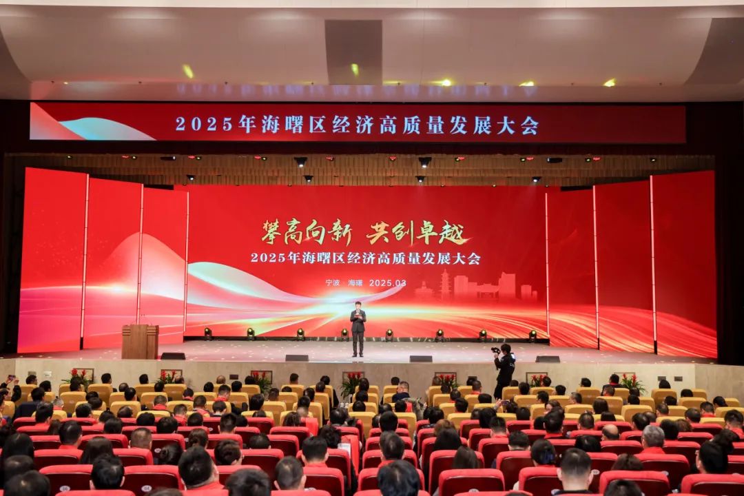 3月13日下午,寧波市海曙區“攀高向新,共創卓越”經濟高質量發展大會隆重舉行。此次大會匯聚區四套班子領導、區屬各單位、各鎮(鄉)街道黨政主要負責人以及企業家代表等眾多嘉賓,旨在深入貫徹上級決策部署,動員全區上下全力推動經濟高質量發展,不斷開創現代化濱海大都市卓越城區建設新局面。